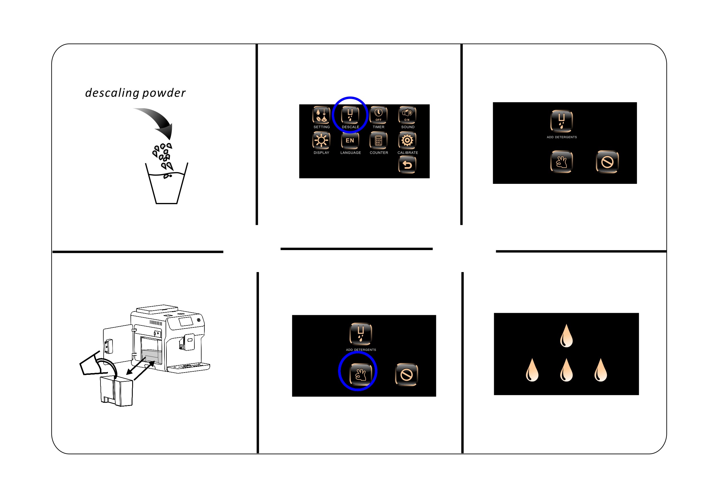 2. In the case of bean tank without beans, the system does not prompt the lack of beans: in the standby interface, press the "menu" → press "calibration" → enter the number "66" → decrease the number.