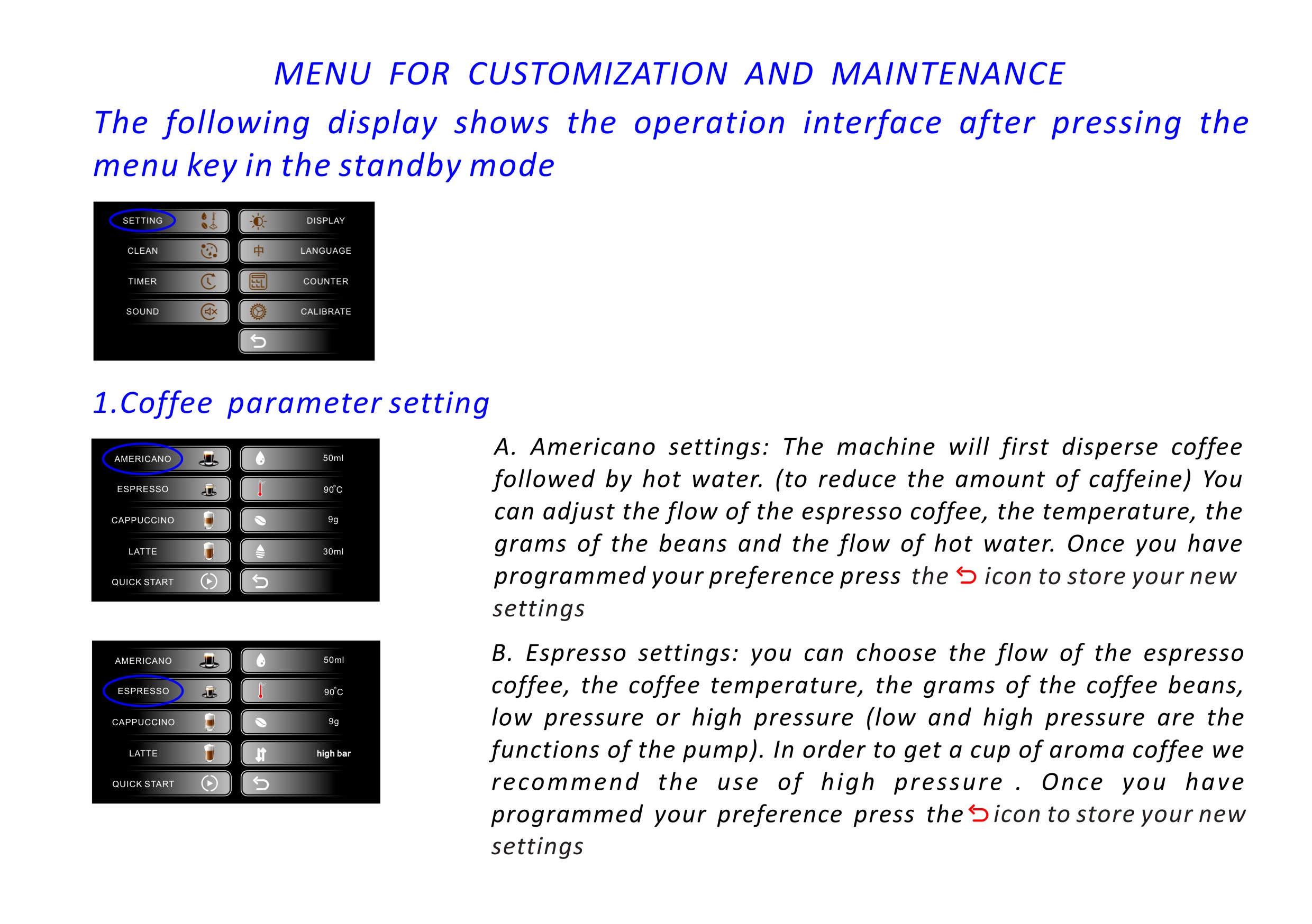 1. In the case of beans within the bean tank, the system prompt there is lack of beans: in the standby interface, press "menu" → press "calibration" → enter the number "66" → increase the number.