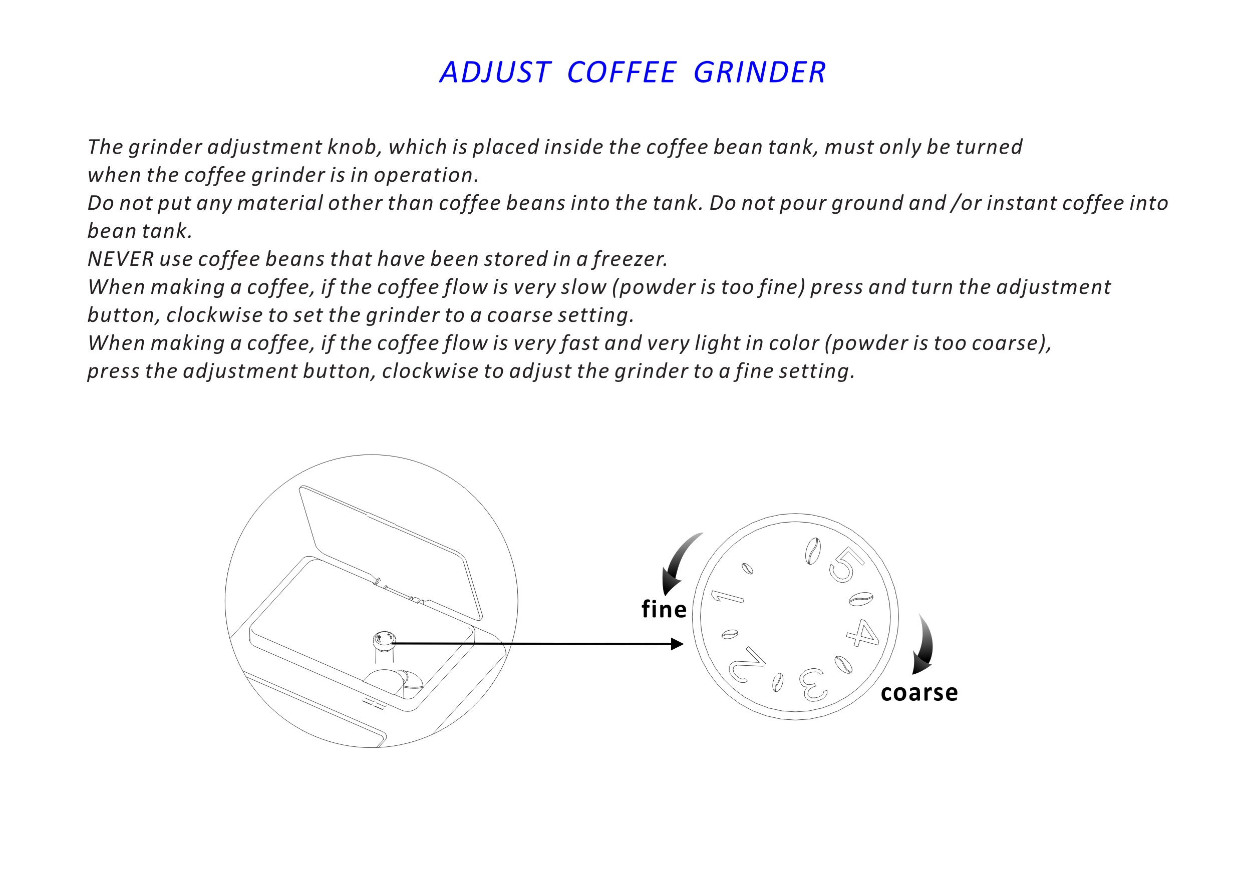 Press and turn the adjustment button to set the grinder to a coarse setting