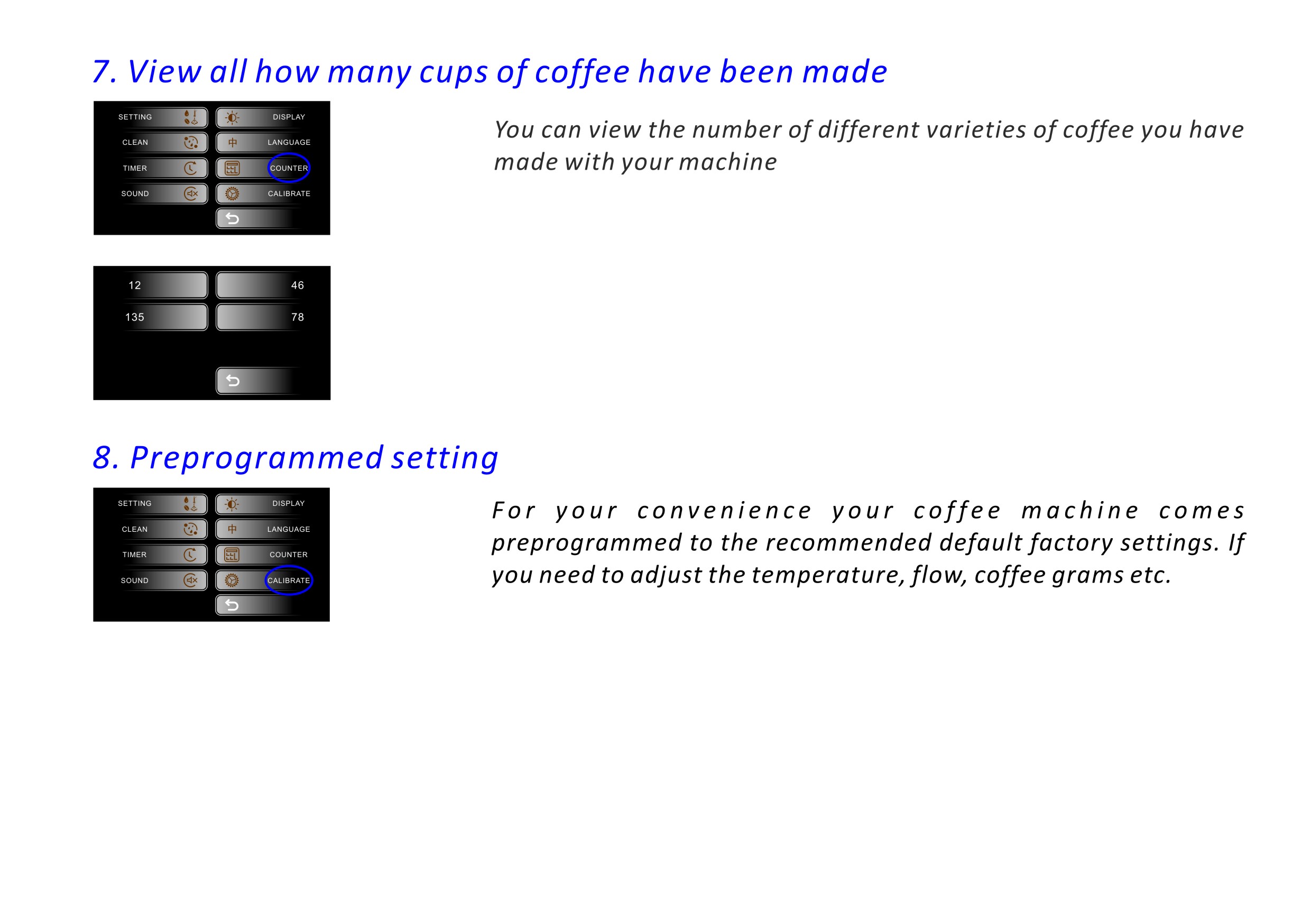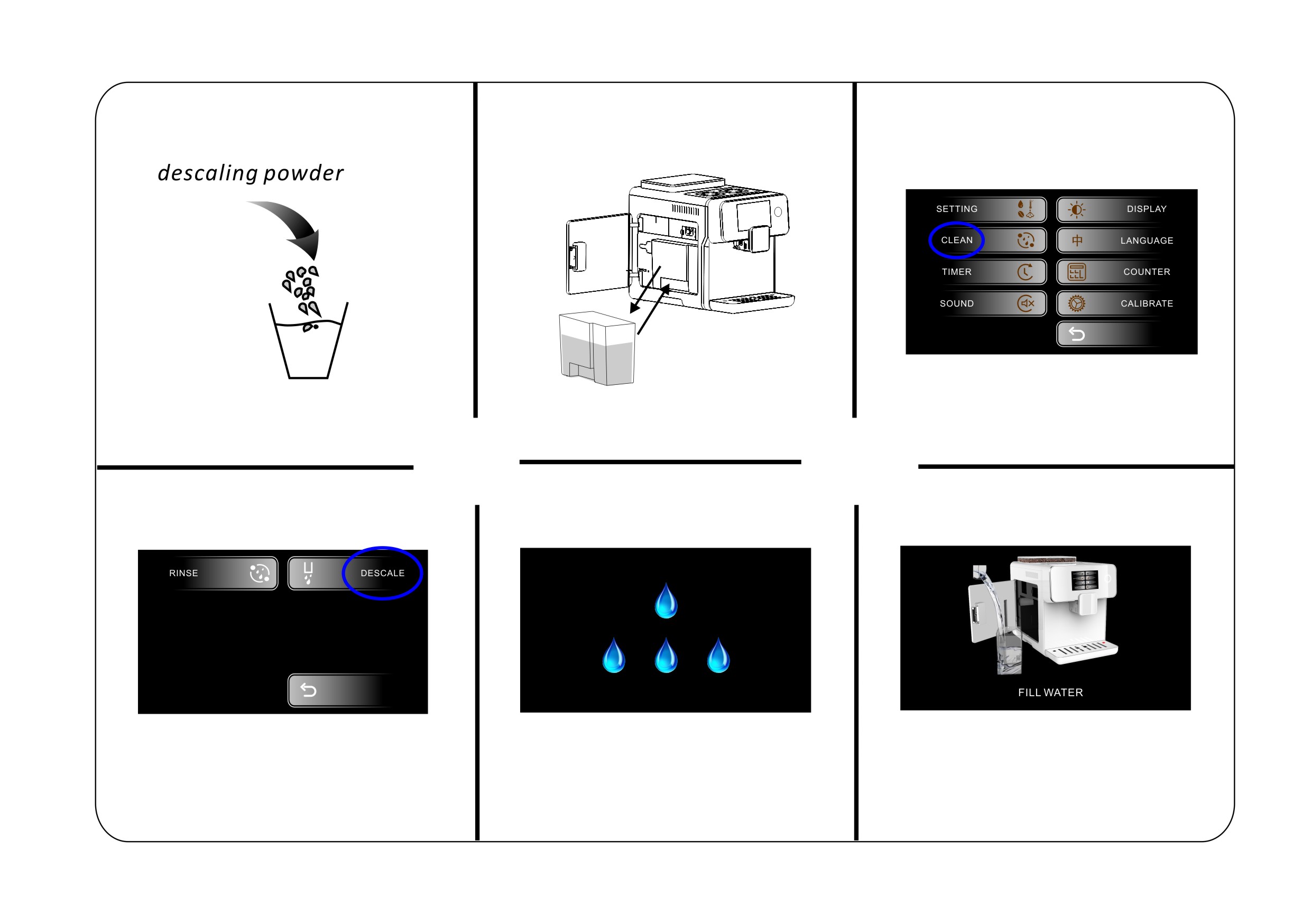 2. In the case of bean tank without beans, the system does not prompt the lack of beans: in the standby interface, press the "menu" → press "calibration" → enter the number "66" → decrease the number.